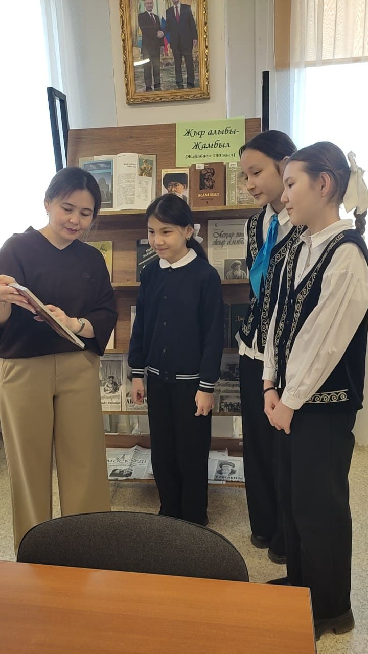 Встреча была посвящена жизни и творчеству великого казахского акына, чьё поэтическое слово и сегодня остаётся живым, актуальным и объединяющим разные поколения и культуры. Программа мероприятия включала книжную выставку, выразительное чтение стихов Жамбыла Жабаева, а также викторину, позволившую глубже погрузиться в историко-культурный контекст его эпохи.