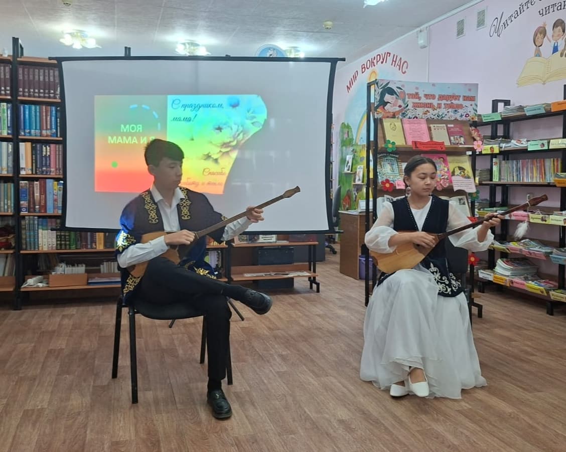 В течение всего мероприятия звучали красивые песни о маме, которые исполнили ученики музыкальной школы № 1: Ковпак Дарья (руководитель Жаркова А. В.) и Бинарова Аяжан (руководитель Боранова Ф. О.). Также прозвучало произведение «Алкисса» в исполнении ансамбля домбристов (руководитель Нурадинова А. А.).