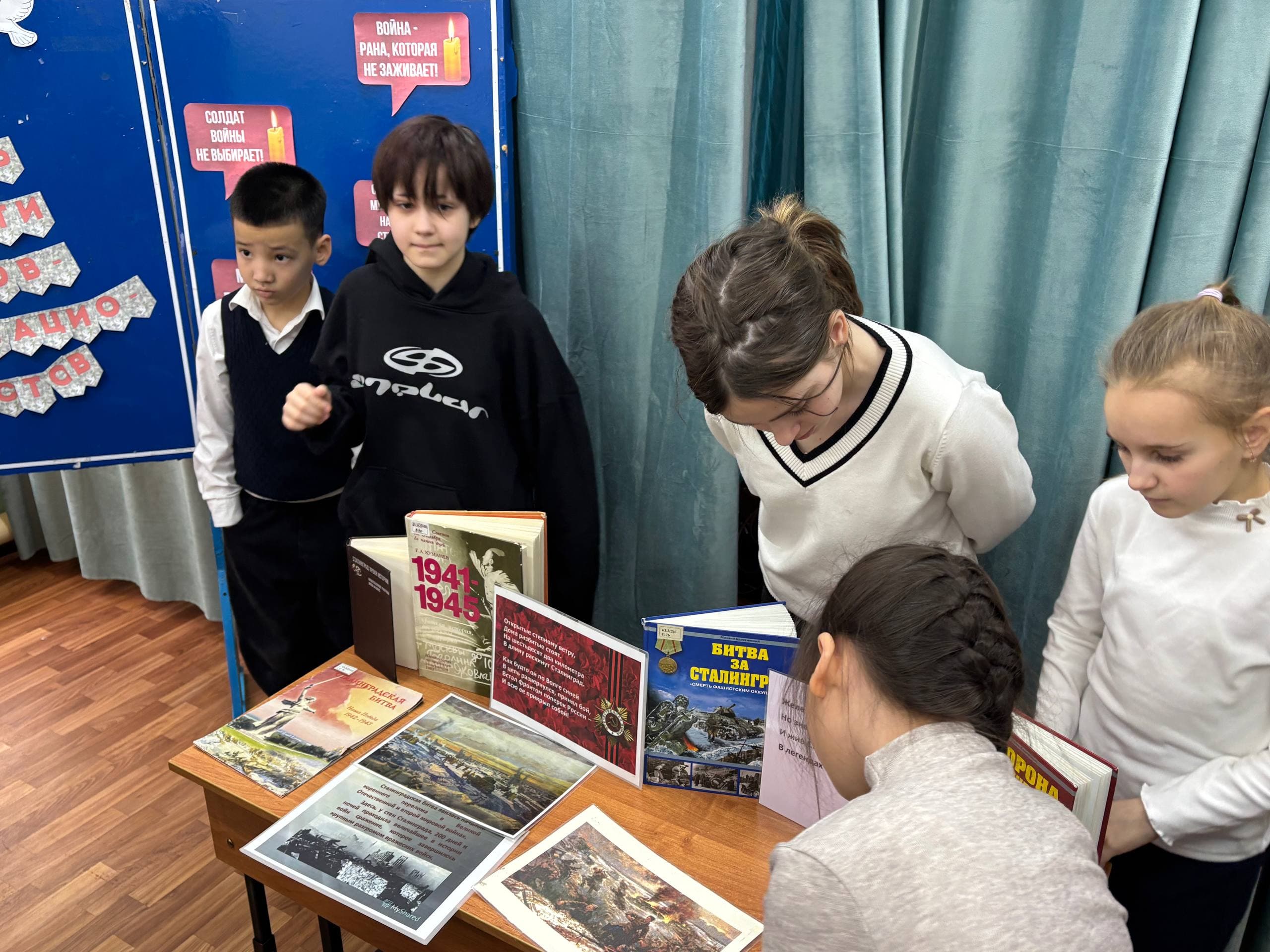 2 февраля, в День воинской славы России, библиотекарь Анастасия Дмитриевна Кутурова провела для учеников 3-х и 4-х классов ГКОУ НШ №15 исторический час. Встреча была посвящена великому событию — разгрому немецко-фашистских войск в Сталинградской битве.