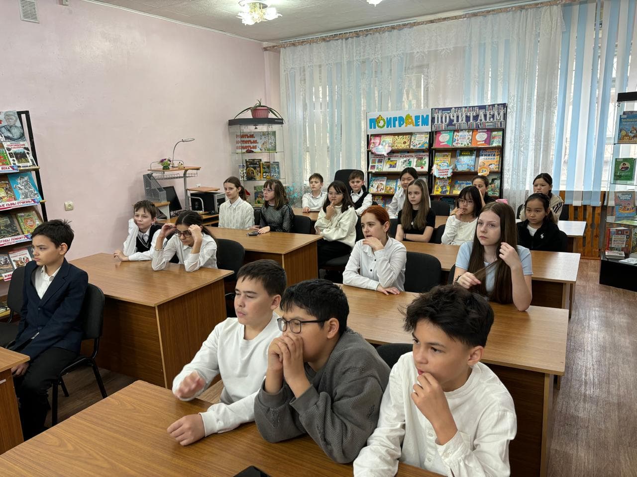 - Громкие чтения: Библиотекарь и учащиеся совместно читали фрагменты произведений, описывающих жизнь и подвиг Зины Портновой. Выбранные отрывки позволили ребятам прочувствовать стойкость и самоотверженность их сверстницы в тяжелейших условиях оккупации.