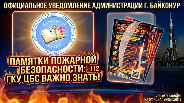 Централизованная библиотечная система города Байконур напоминает о важности соблюдения правил пожарной безопасности. Огонь не прощает беспечности, поэтому знание простых алгоритмов действий может спасти жизнь вам и вашим близким.